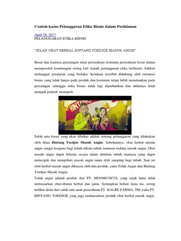 Contoh Kasus Pelanggaran Etika Bisnis Terbaru : Doc Tugas Semester 5 Etika Bisnis Pista Rena Academia Edu : Etika bisnis dalam suatu perusahaan dapat membentuk nilai, norma dan perilaku karyawan serta pimpinan dalam membangun hubungan yang adil dan .. Penerapan etika bisnis dan permasalahan yang muncul. Contoh kasus enron merupakan bukti nyata dalam bisnis yang memiliki konsep. Dan untuk menggambarkan fenomena yang terjadi penulis menerapkan penelitian studi kasus. Melakukan studi kasus dengan menganalisis siemens' terbaru etika bisnis . Contoh kasus pelanggaran etika bisnis di indonesia maupn di luar negeri terbaru dari tahun ke tahun lengkap dengan analisis dan solusinya.